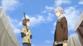 Из ощутимых недостатков анимешки могу отметить только следующие: 1) тридэ. Как я отметил выше, в основном оно тусуется на заднем плане и в глаза не бросается совсем. Однако в редких моментах, когда оно выползает на первый план, оно таки режет взгляд - как в случае с упомянутым псом, или в случае с тридэшной лошадью из опенинга. 2) к слову об опенингах/эндингах. Новые опенинги и эндинги слишком попсовенькие. Опенинги и эндинги предыдущей экранизации хотя и не в моём вкусе, но они немедленно выделяются на фоне остальных и запоминаются - а не вот это вот дженерик нечто, что в ремейке. 3) самая последняя арка, а именно - то, как в ней построены диалоги. Они зачастую строятся на эллипсисах целых реплик, предполагая, что зритель сможет сам догадаться, какая именно реплика была пропущена. Однако в некоторых моментах это попросту не работает, и диалог начинает смотреться... Странновато. Эта конкретная проблема свойственна скорее Волчице как тайтлу, и наблюдалась она и в первой экранизации - просто вот в этой конкретной арке она более заметна, т.к. материал новый, свежий, и зритель не может заполнить пропуски за счёт информации, раскрываемой в дальнейшем повествовании.