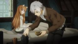 Более того, некоторые сюжетные моменты ТАКЖЕ лучше именно в ремейке. Там, где в первой экранизации была девушка-торговка, теперь мужик-торговец - что гораздо более логичней, с учётом того, что, во-первых, средневековое гендерное неравенство тут присутствует (что можно увидеть по дальнейшим фрагментам из аниме, т.е. странно, что в старом аниме именно торговке ничего не помешало заниматься ремеслом); во-вторых, дальнейшая ревность Хоро к Норе более оправдана (а не как в старой экранизации, где Лоренс Хоро из беды вытащил, в критичной ситуации отказался от предложения торговки в пользу Хоро, а её ревность после этого не только не поугасла, но и взыграла с новой силой).
