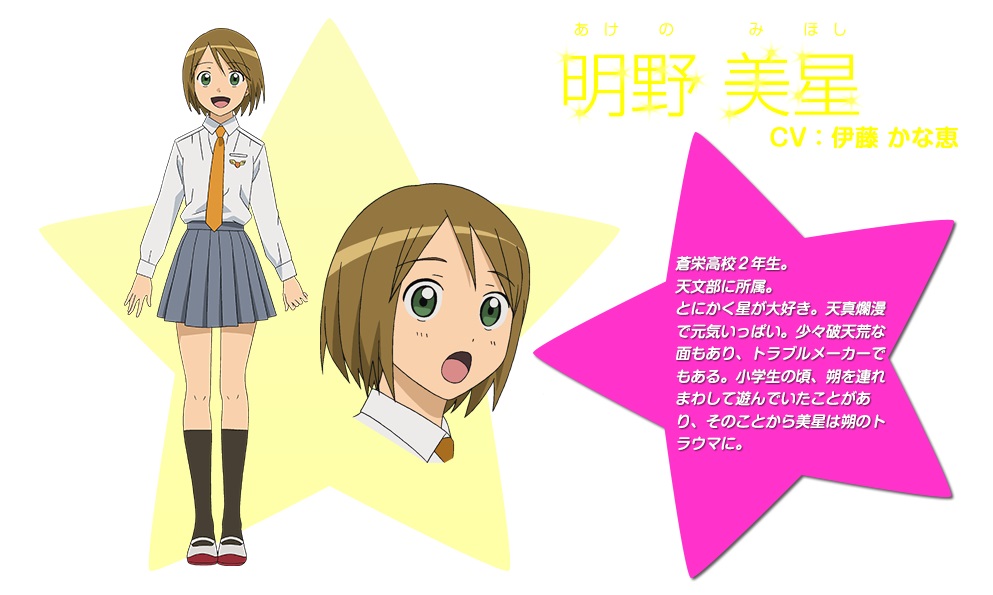 Семья Саку Ояги часто переезжает, и в старшую школу он поступает в небольшом городе, где жил семь лет назад. Хотя за время скитаний Саку вырос высоким и солидным парнем, внутри он остался книжником и домоседом и с ужасом вспоминает Михоси, на год старшую подружку детских лет, что жила в этом городе и безжалостно вытаскивала его, куда пожелает – в лес, в поле, в горы, подальше от любимых книжек. Кончились их забавы падением девочки с дерева, а что дальше – Саку и вспоминать себе запретил. Ну и кто бы сомневался, что парень встретит Михоси Акэно в первый день нового учебного года, когда та прямо со школьной крыши объявила набор в клуб астрономии?
