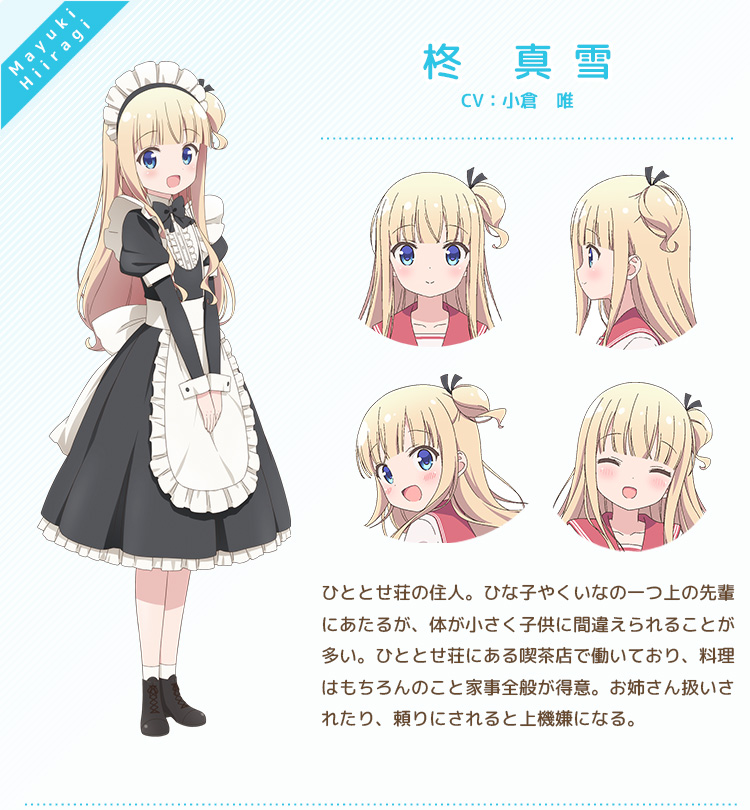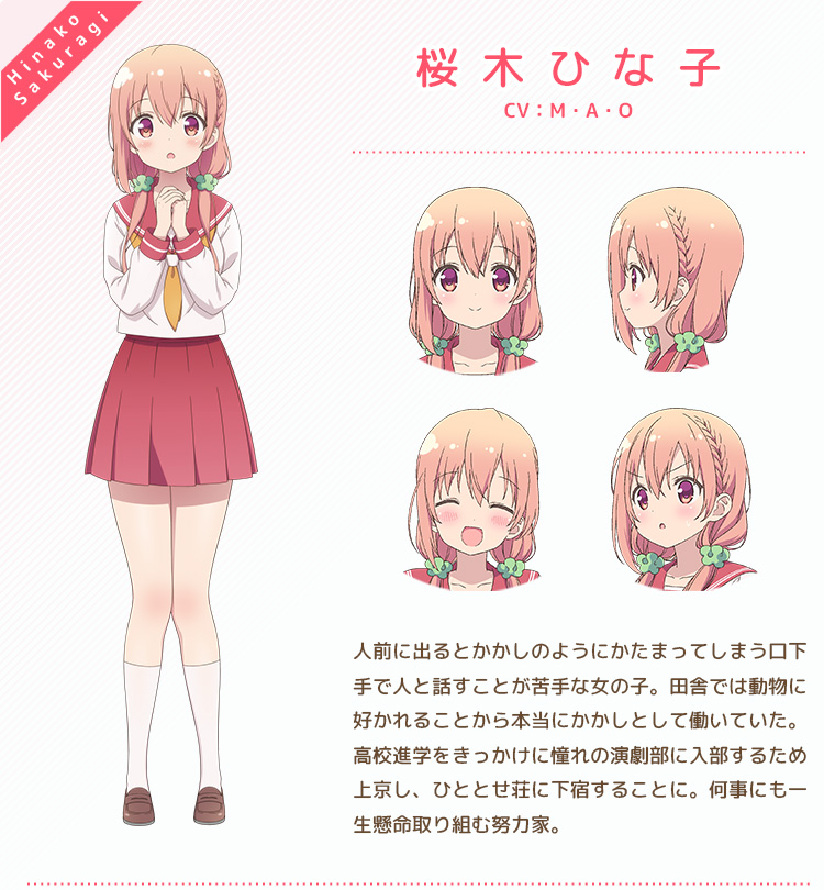 По сеттингу и в целом несколько напоминает "Кролика заказывали", но, конечно, слабее. Шуток меньше, они в основном крутятся вокруг одного, - лёгкого аутизма главной героини, которая приезжает из далёкой деревни в Токио с мечтой стать актрисой театра, но при общении с незнакомыми людьми застывает и превращается в пугало, которым и подрабатывала у себя на родине. Неожиданно много весьма откровенного фансервиса для такого тайтла, здесь как бы не очень уместного, - режиссёр Yosuga no Sora постарался. Но временами так и хочется вскрикнуть - какого чёрта так мило! (не по поводу фансервиса, а вообще). А ещё есть некоторое количество прозрачных намёков на нежную девичью дружбу, но чисто визуальных, - все эти милые смущения, сердечки-цветочки и т.п., но ничего "такого" по сюжету нет. И, не могу не упомянуть, - здесь есть Ку-тян - эдакая повзрослевшая Коната из Лаки стар, которая любит поесть, любит книги и любит есть... книги. И ещё некоторое количество персонажей со своими странностями. Нарисовано неплохо, персонажи милы, а что ещё нужно любителю слайсиков? За милоту - 7 из 10.