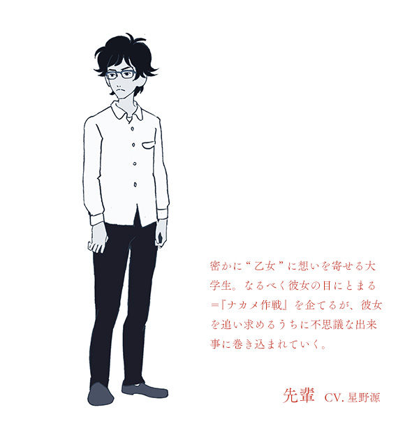 М-да... Похоже мне опять начинать. Ну ладно. В 2004 году начал издаваться роман-хроника комнаты в 4, 5 татами молодой японской писательницы Томихико Морими в котором автор, используя свой студенческий опыт пребывания в Токийском Университете живоописала весну студенческой юности, любовные приключения, попойки, поиски собственного места в жизни, разочарования и достижения молодого человека. В 2010-м талантливый режиссер-аниматор Юаса Масааки поставил одноимённое аниме, где используя свой фирменный дизайнерский сюрреалистичный стиль превратил это произведение в настоящее явление в аниме. И вот, спустя семь лет оригинальный авторский состав, что трудился над хрониками татами вернулся с новой историей из жизни неутомимого студенческого кампуса. На этот раз сюжет крутится вокруг безымянной черноволосой девушки-первогодки и её грандиозных приключений в течении одной ночи студенческого фестиваля в круговороте которого мы встретим не только безымянного героя 4, 5 татами и его альтер-эго - ковбоя, но и вечного студента Сейтаро Хигучи и его подругу Тануки, и наконец, показавшего свою истинную божественную суть, Озу. Этой ночью свершится столько событий, что лучше увидеть самим, например алкогольная дуэль главгероини и злобного старичка-олигарха, или устроенный этим же престарелым интриганом турнир на поедание сверхострой пищи за право обладания редкими книгами, или великолепный несанкционированный мюзикл поставленный передвижным (по причине отсутствия разрешения) театральным кружком и фееричная погоня комиссии по устроению фестиваля за ним. Даже если вы и не знакомы с сериалом семилетней давности вы ничего не теряете ибо история отдельна и самодостаточна. Ну а уж если вы смотрели его, то удовольствие от узнавания персонажей и окружения будет дополнительным бонусом к удовольствию от просмотра этого аниме. Прекрасное аниме Юасы Масааки получает от меня 9 яблок из десяти. Всем привет!